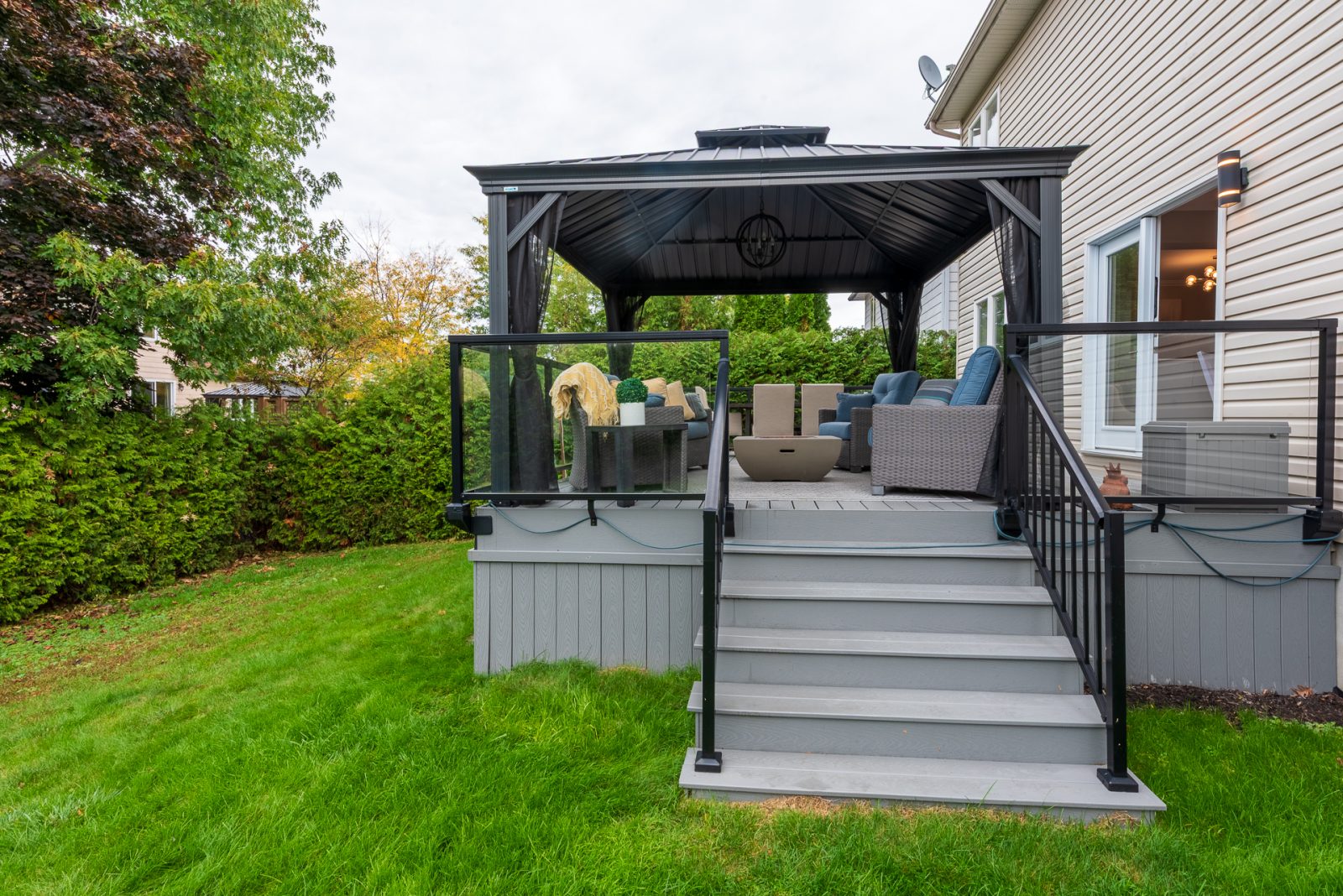 This home is more than move-in-ready - the owners have looked after the little things and the big things over the years. Enjoy the practically brand new composite deck with glass panel railings, warming ambiance created by the carefree electric fireplaces mounted in brick feature walls in the family and recreation/theatre rooms, sparklingly captivating ceiling light fixtures throughout, a combination of classic centre hall plan in the front of the home with today's requisite lifestyle kitchen / breakfast / family room layout forming the hub of daily life with direct access to the deck and back yard.